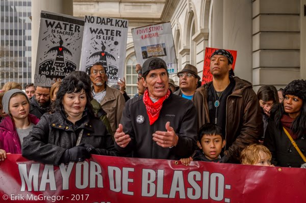“The violation of the environment and long-standing Nation to Nation treaties at Standing Rock has galvanized millions of caring people,” said Rick Chavolla (Kumeyaay), Chair of the Board of the American Indian Community House. “In solidarity, New Yorkers expect Mayor De Blasio and the Comptroller to take action that protects all of our futures. It’s morally wrong for NYC funds to continue to perpetuate hundreds of years of violations of treaty rights and destruction of Indigenous Peoples’ lands, territories, and waters.”