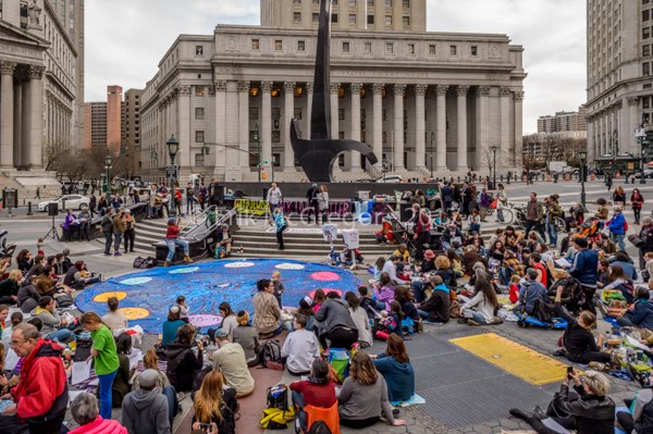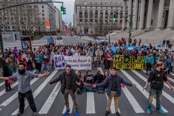 NEW YORK CITY – Jewish and Muslim community leaders and New York elected officials joined hundreds of Jewish and Muslim New Yorkers to celebrate “Seder in the streets” on April 13, 2017; targeting Mayor DeBlasio, demanding resistance to Trump, an end to broken windows policing, and stronger sanctuary city policies. The celebrations began at City Hall steps with a press conference, followed by a march to Foley Square where the celebration concluded with an act of peaceful civil disobedience demanding an end to NYPD policies that target communities of color and enable deportations. A total of 6 people were arrested as a result of the action.