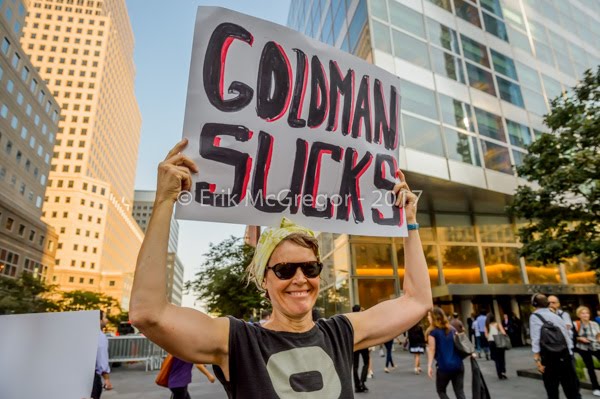 The focus of the action was to tell Goldman Sachs to stop financing oil, gas, coal, and pipelines and expose the banks control over Trump and the federal government.