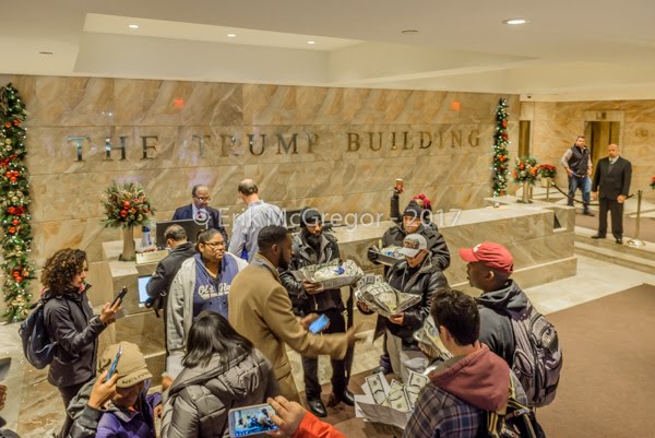-Trump’s Tax Scam will literally be taking food and resources out of our mouths. That’s why this Thanksgiving, the communities struggling to get by will visit the Trump Building in Wall Street to deliver turkeys loaded with money.
