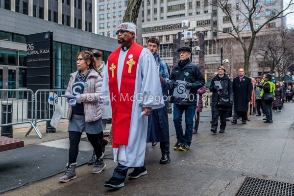 Leading immigrant and civil rights organizations and event co-sponsors American Friends Service Committee, Brooklyn Defender Services, Center for Constitutional Rights, Detention Watch Network, Immigrant Defense Project, LatinoJustice, Make the Road New York, MinKwon Center for Community Action, National Immigration Project of the National Lawyers Project, New York Civil Liberties Union, the New York Immigration Coalition, Northern Manhattan Coalition for Immigrant Rights, UnLocal, Inc. rallied outside 26 Federal Plaza, where Ragbir was detained. The event was also attended by City Council Members Brad Lander, Carlos Menchaca, Ydanis Rodriguez and Jumaane Williams, Manhattan Borough President Gale Brewer, State Senator Gustavo Rivera, and State Assemblywoman Jo Anne Simon, in addition to hundreds of community members and faith leaders.