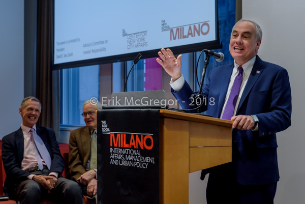 Thomas P. DiNapoli, New York State Comptroller since 2007, and graduate of Milano School for International Affairs, Management and Public and Urban Policy (’88) on his efforts as trustee of America’s third largest state pension fund to shape corporate policies and practices on environmental, social and governance issues and achieve strong returns for the Fund. In his tenure as State Comptroller, the New York State Pension Fund has been one of the most active in the U.S. in promoting sustainable business practices among its portfolio companies on a wide range of issues, including climate change, board diversity, LGBT rights and political spending.