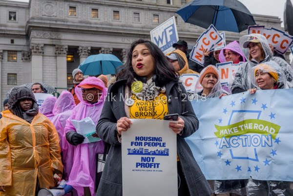Members and leaders of the following community organizations spoke at the rally today: Citizen Action of New York (CANY), Community Voices Heard Power (CVHP), Make the Road Action (MRA), New York Communities for Change (NYCC), Alliance for Quality Education, Working Families Party, with allies supporting from Indivisible Nation BK, NY Progressive Action Network, True Blue NY, Justice League NYC, Empire State Indivisible, Met Council on Housing, Tenants and Neighbors, and Rise and Resist.