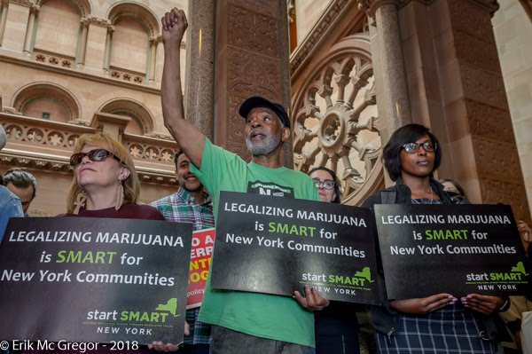 Albany, NY — Advocates from a statewide coalition assembled in the New York state capitol on May 8, 2018, to urge state Legislators and the Governor to move on marijuana reform and emphasize that marijuana legalization remains a social, racial, and economic justice issue.