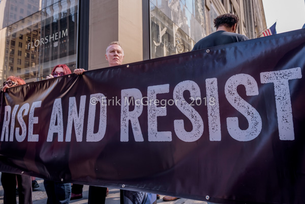 “I will do everything in my power to prevent him from harming more people, spreading more hate, and lying constantly to his constituents with no evident conscience,” said Martin Quinn, member of Rise and Resist, the direct action group that organized the protest. “When America has faced the worst of injustice, people took to the streets and won. That’s why we’re in the street today.”
