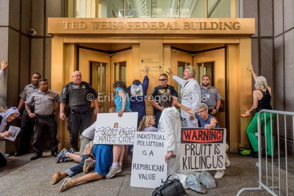 Rise and Resist joins environmental advocacy organizations for a protest outside the Environmental Protection Agency (EPA) offices in downtown Manhattan, calling for the removal of Scott Pruitt