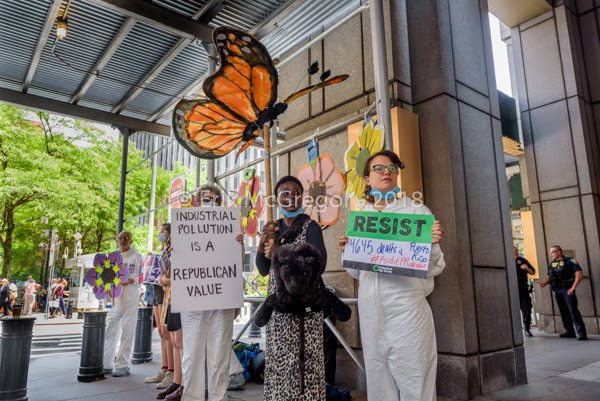 - June 4: Donning hazmat suits, we will hand out filthy branded “Pruitt Water” to call out Pruitt for gutting the Clean Water Act and burying reports of toxins in drinking supplies.