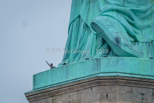 New York, NY – Liberty Island was evacuated because of a person climbing the Statue of Liberty’s base on the Fourth of July shortly after seven protesters who unfurled an “Abolish ICE” banner from the statue’s pedestal calling for abolishing Immigration and Customs Enforcement were arrested.