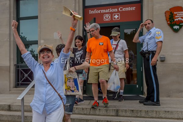 In literature handed out at the protest site, the protesters demand that families be reunited now, that the current administration end detention as a deterrent, that deportations be halted, and that legal counsel for all immigrants be provided.