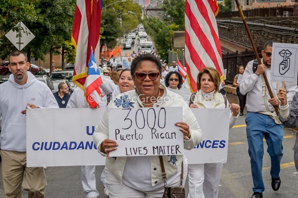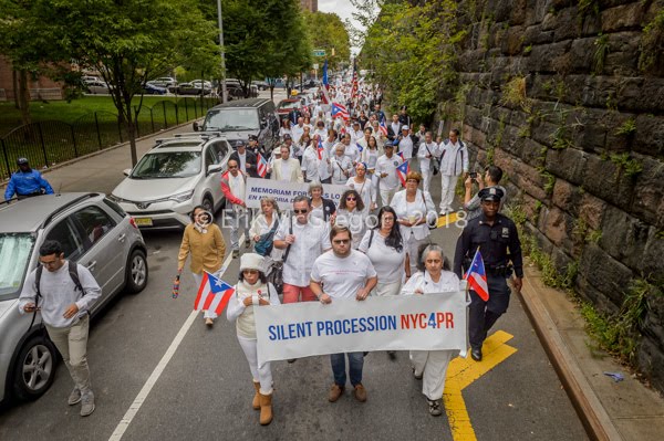 New York, NY – Hundreds of New Yorkers dressed in white participated on a silent procession through the streets of New York on September 23, 2018 to focus the nation’s attention on this callous and craven neglect of U.S. Citizens in Puerto Rico still struggling for survival in the aftermath of Hurricane Maria.