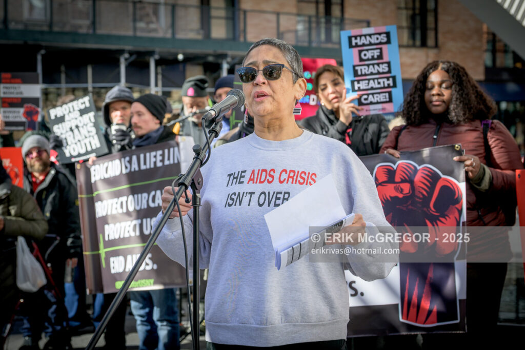 Speakers brought attention to cuts to global AIDS funding that are fueling mass death and spread of HIV abroad, domestic cuts that will shorten lives and increase sickness, poverty, and hunger, along with Executive Orders and public threats meant to silence opposition.